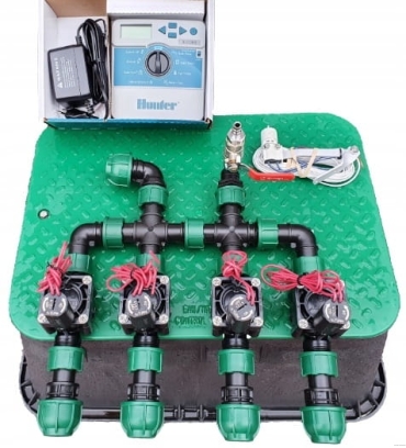 Zestaw automatycznego nawadniania ogrodu Hunter na kolektorach - 4 sekcje sterownik wewnętrzny